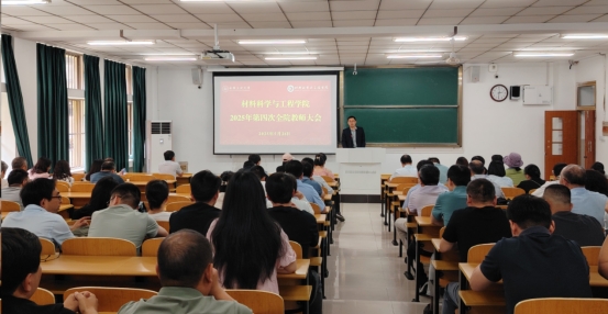 在秀山校区教一北105教室召开2025年第四次全院教师大会,学院全体教师参加了会议,会议由院党委书记杨建主持。