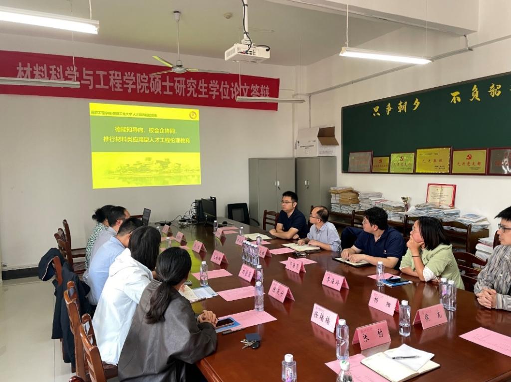 座谈交流会上,夏爱林代表学院对王珏一行的来访表示欢迎,双方围绕学生考研、就业、培养方案、专业认证以及材料工程伦理教育等几方面展开了深入交流。王珏介绍了专业教师、辅导员、班主任各方齐抓共管,共同助力学生考研。建议通过实施一系列辅助性措施来增强学生的考研意识,重点培养学生干部为引领者,以个人考研经历和心得激励学生树立明确的考验目标并为之努力,同时还介绍了南工程材料院近年来在校会企合作推进材料工程伦理教育方面的探索与实践。夏爱林介绍了学院专业发展历史和当前的学风建设情况,并着重围绕学生的考研和专业认证等情况进行了交流。参会的教师代表也纷纷发表自己的看法和心得。