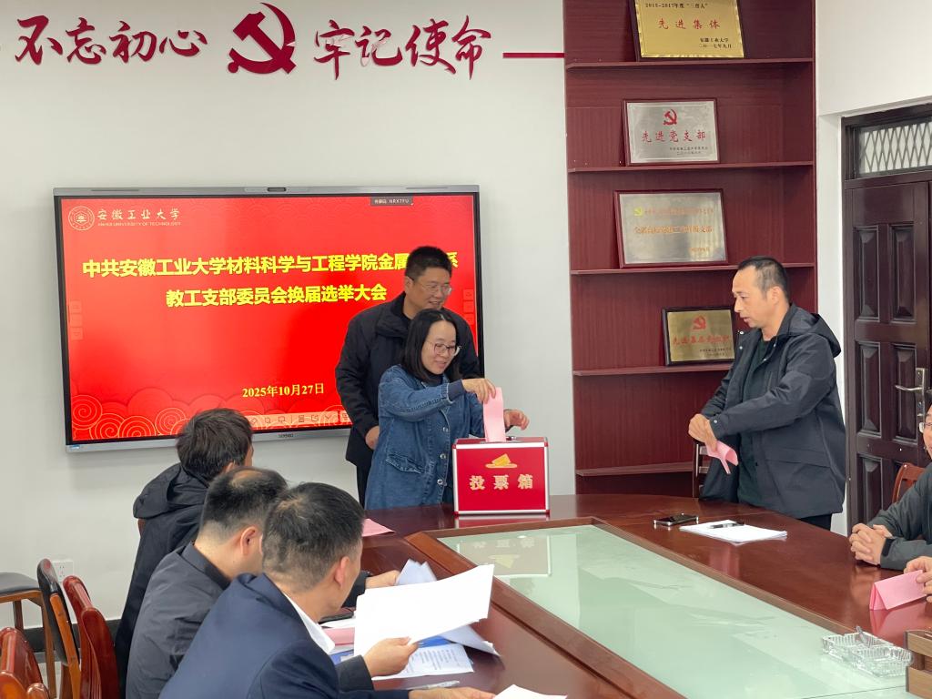 为进一步加强党支部组织建设,根据《中国共产党章程》《中国共产党基层组织选举工作条例》及学校相关实施方案,10月27日,金属材料系教工党支部在材料楼南410会议室召开换届选举党员大会,学院党委书记杨建出席会议,会议由党支部书记王永强主持。