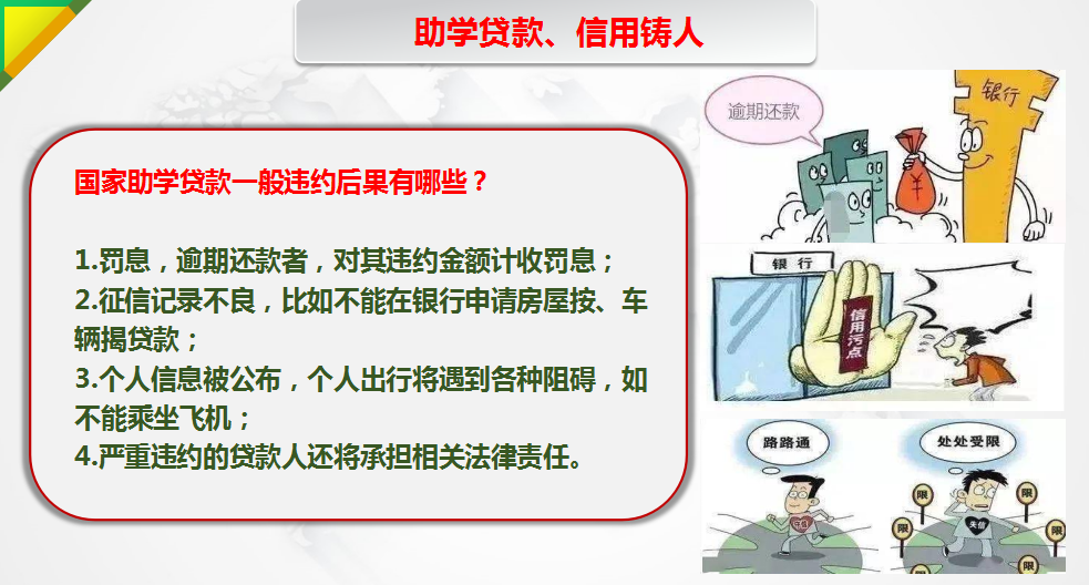 首先,李盼老师通过还款指南、往届逾期案例分析两个部分进行讲解说明,详细地介绍了还款确认、继续贴息、提前还款的操作流程,表明征信的重要性以及逾期还款的不良后果,强调助学贷款是检验同门学履约守信一个方面,它让青年学子明白何为契约精神,如何做到自立自强,我们应该常怀感激之情,履行应有责任和义务,恪守诚信原则,以实际行动回馈学校和社会的帮助。其次,李老师提醒学生在毕业设计期间以及将来攻读硕士研究生时要坚守学术道德,弘扬学术诚信,强调学术诚信是治学之本、成才之本、立校之本,是各位将来做好科研工作的必备素质。最后,李老师还提醒大家在择业、就业中药秉持“诚信为先、知行合一”的理念为指引,一是要诚信签约,求职材料勿弄虚作假,二是要恪守契约精神,切勿恶意违约。