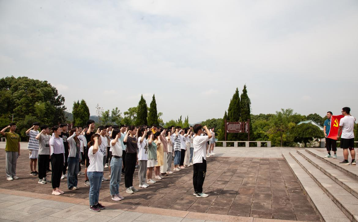虽然天气炎热,但同学们精神饱满、士气昂扬,风发的雄姿令过往行人无不点头称赞。经过四个小时、近25000步共16公里的行程,同学们顺利抵达了此次入党宣誓仪式的终点:濮塘革命烈士陵园。