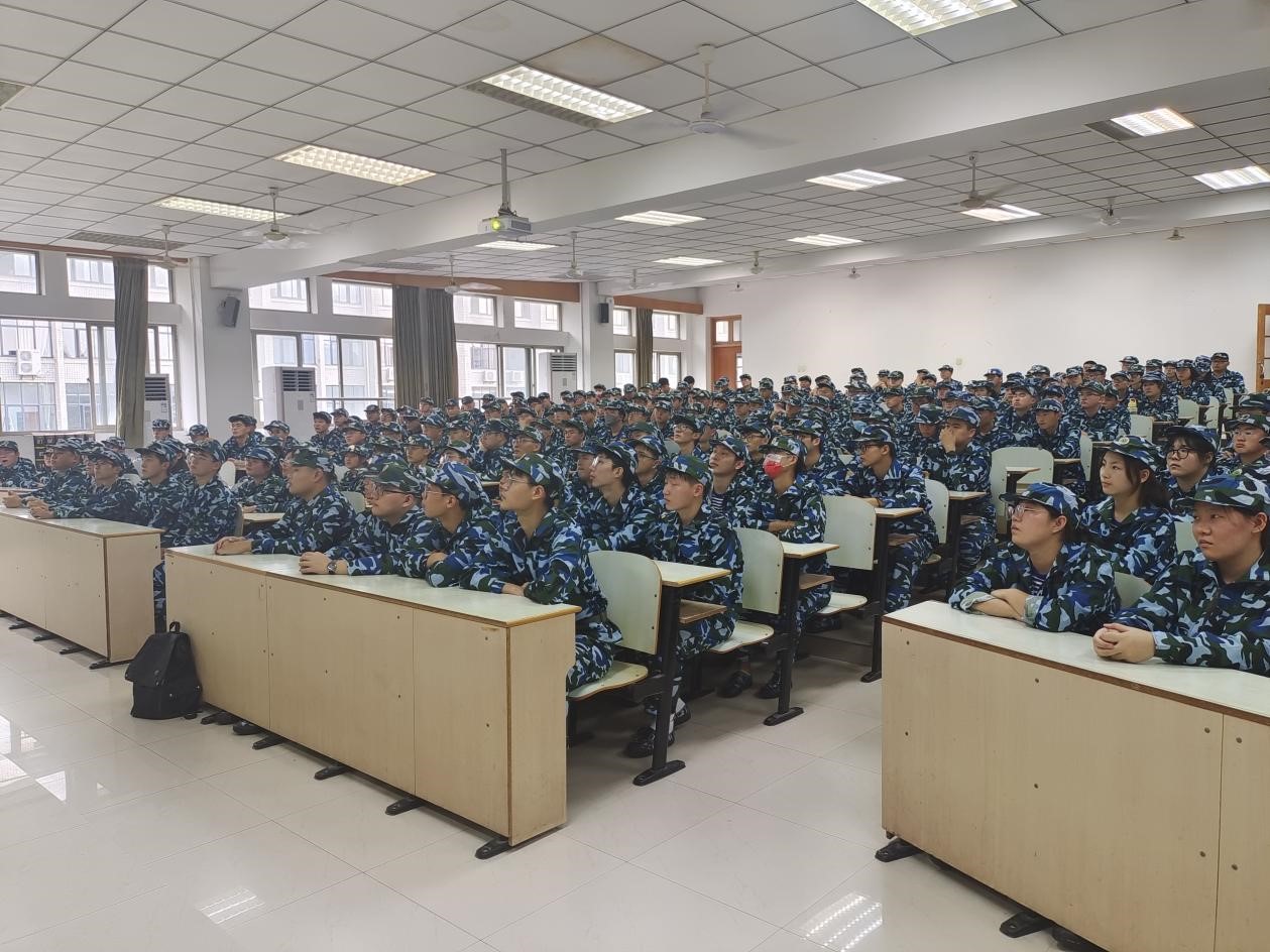 接着,赵颖虹副院长从军事训练的意义讲起,指出了军训是国防安全教育的需要,对培养大学生的爱国主义和集体主义精神具有重要意义。赵颖虹重点讲述了军训内容安排、生活习惯养成、意志品质锻炼和创先争优等方面的内容,鼓励同学们在新的环境中要积极调整心态,以饱满的精神状态迎接军训生活,严格要求自己,发扬吃苦耐劳的精神,并将这份毅力与养成的良好习惯带到大学四年生活中。