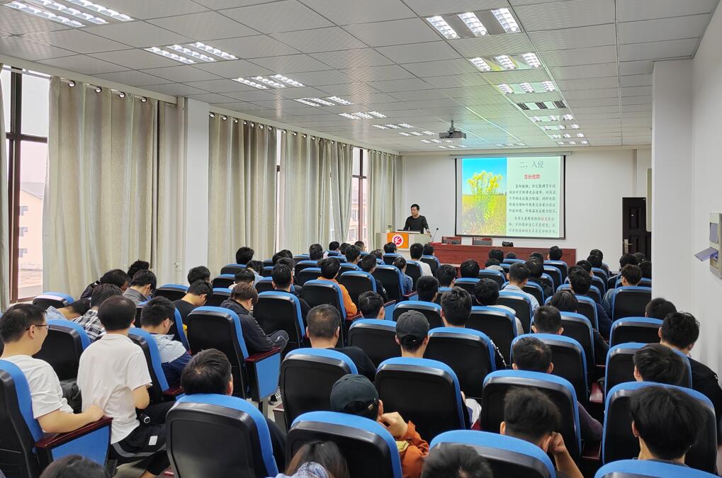 本次活动邀请了当涂一中生物课名师、马鞍山第九届青联委员江浩,为学院师生代表讲授《“加拿大一枝黄花”防治及生态文明保护知识》的专题讲座。江浩科普了“加拿大一枝黄花”的分布区域、发生面积、发生趋势、传播扩散途径、危害影响方式以及清除方法等知识,他结合习近平生态文明思想,从绿色发展战略、发展路径、发展目标等三方面诠释了开展生态文明建设的重要意义与举措。他鼓励同学们要积极成为社会主义生态文明建设的践行者,共同建设美丽校园、美丽中国。讲座案例丰富、引经据典、生动形象,在场师生深受启发,受益匪浅。