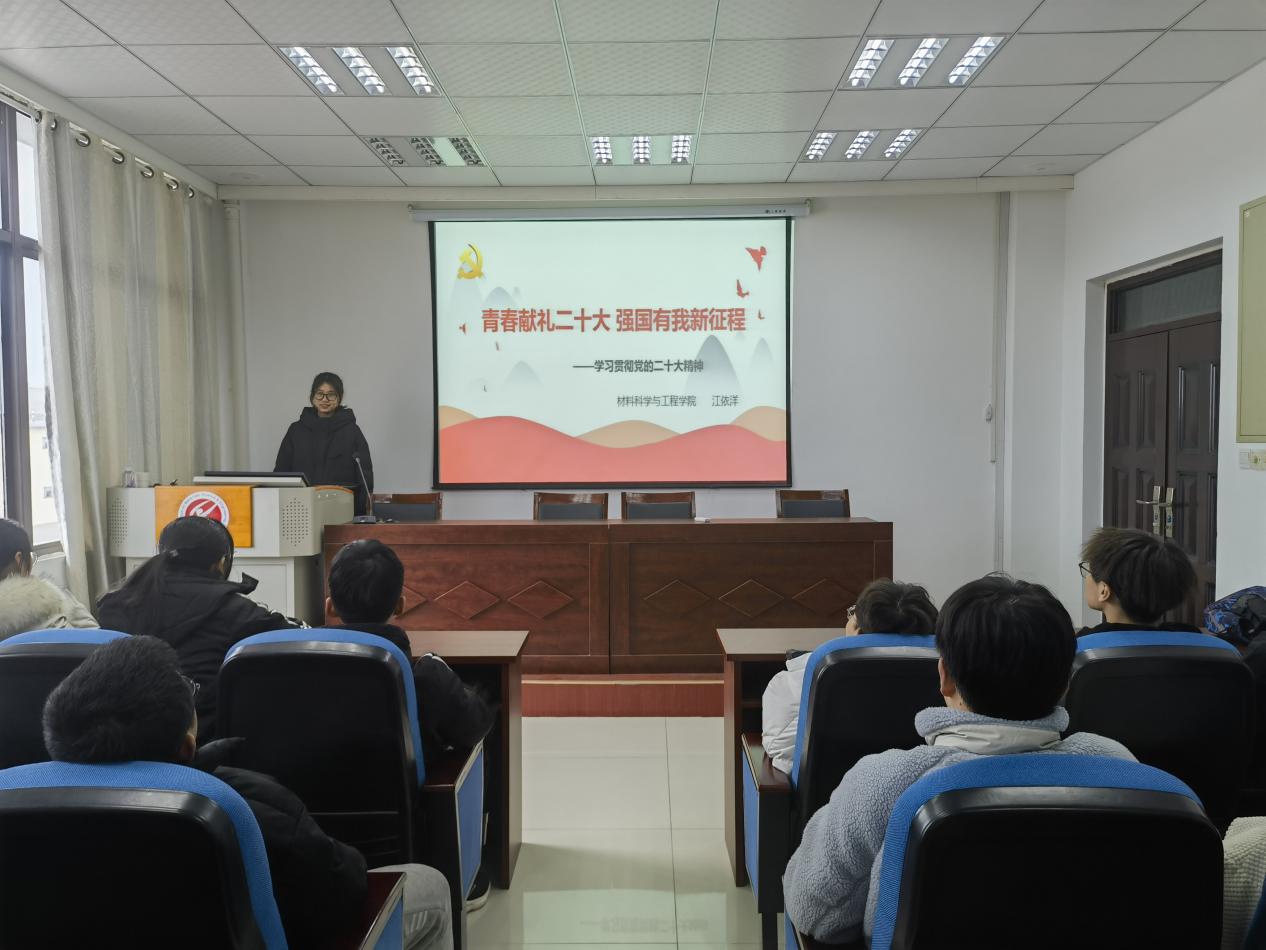 “材青春”大学生宣讲团结合各年级实际情况,面向全体团员青年和学生开展相关宣讲活动。为深入学习贯彻党的二十大精神,营造学习宣传党的二十大精神的浓厚氛围,用习近平新时代中国特色社会主义思想为青年学子凝心铸魂,女同av