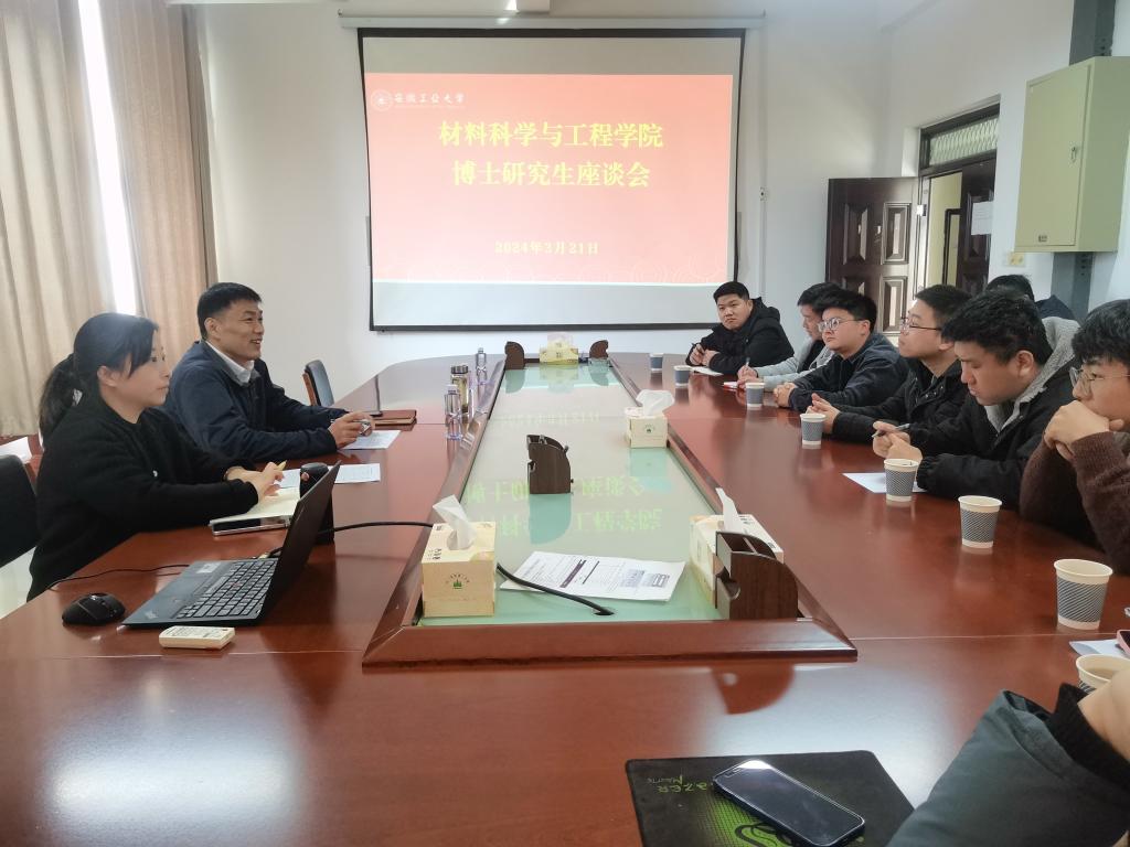 在材料南楼410会议室召开博士研究生座谈会。学院党委书记杨建出席,与学院全日制非定向博士进行了座谈交流。会议由研究生辅导员张佩佩主持。