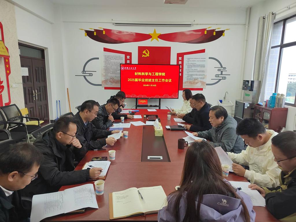 于材料南楼405召开2025届毕业班班主任会议,学院党委书记杨建,党委副书记、纪委书记、副院长汪盛颜,2025届毕业班辅导员和全体班主任参加会议。