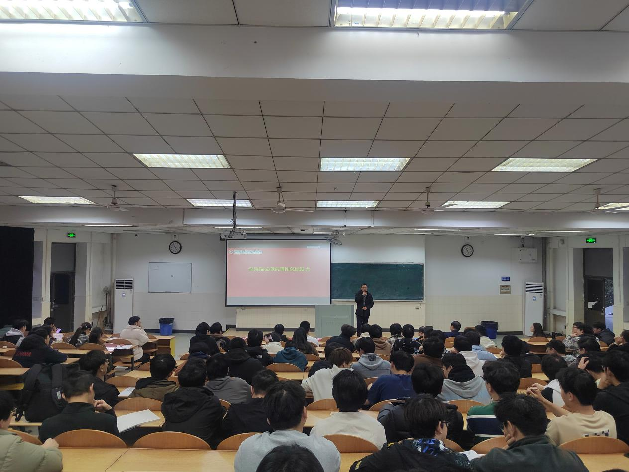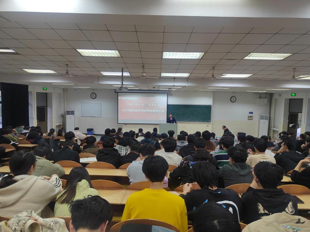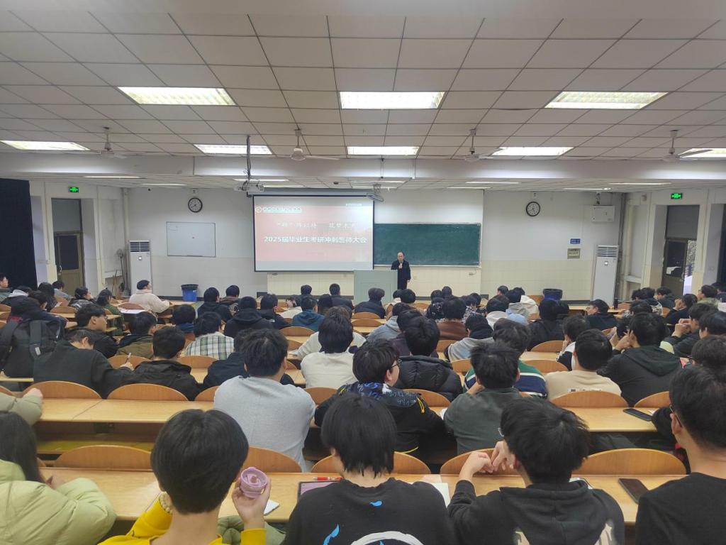 于阶教103举行2025届毕业生考研冲刺誓师大会,院长柳东明,副院长夏爱林及毕业班辅导员参加会议。学院党委副书记、纪委书记、副院长汪盛颜主持会议。