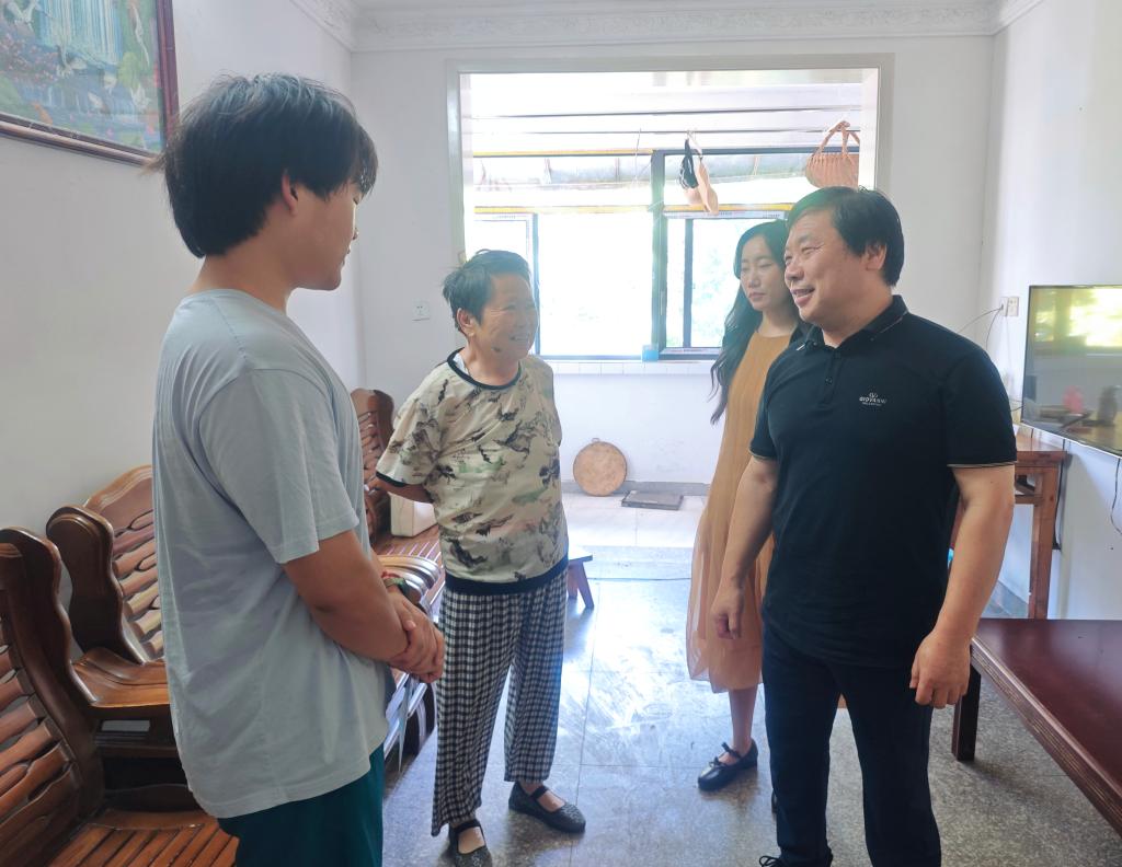 7月4日,汪盛颜一行深入滁州、六安两地,走访家庭经济困难学生家庭。每到一户,汪盛颜与学生及家长进行交谈,详细了解家庭状况、实际困难及学生在校情况,并讲解国家及学校各类资助政策,传递关怀。他肯定学生在逆境中刻苦求学的精神,勉励他们珍惜时光、勤奋学习、锤炼本领,以实际行动回报国家、社会和父母。家长对学校的关怀深表感谢。